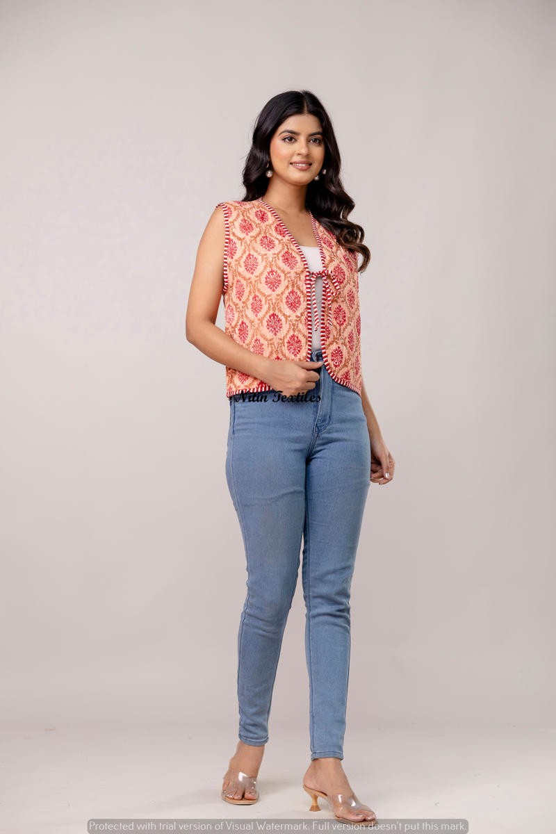 Ideal for casual outings, brunches, or festive get-togethers, this waistcoat brings effortless flair to your wardrobe.