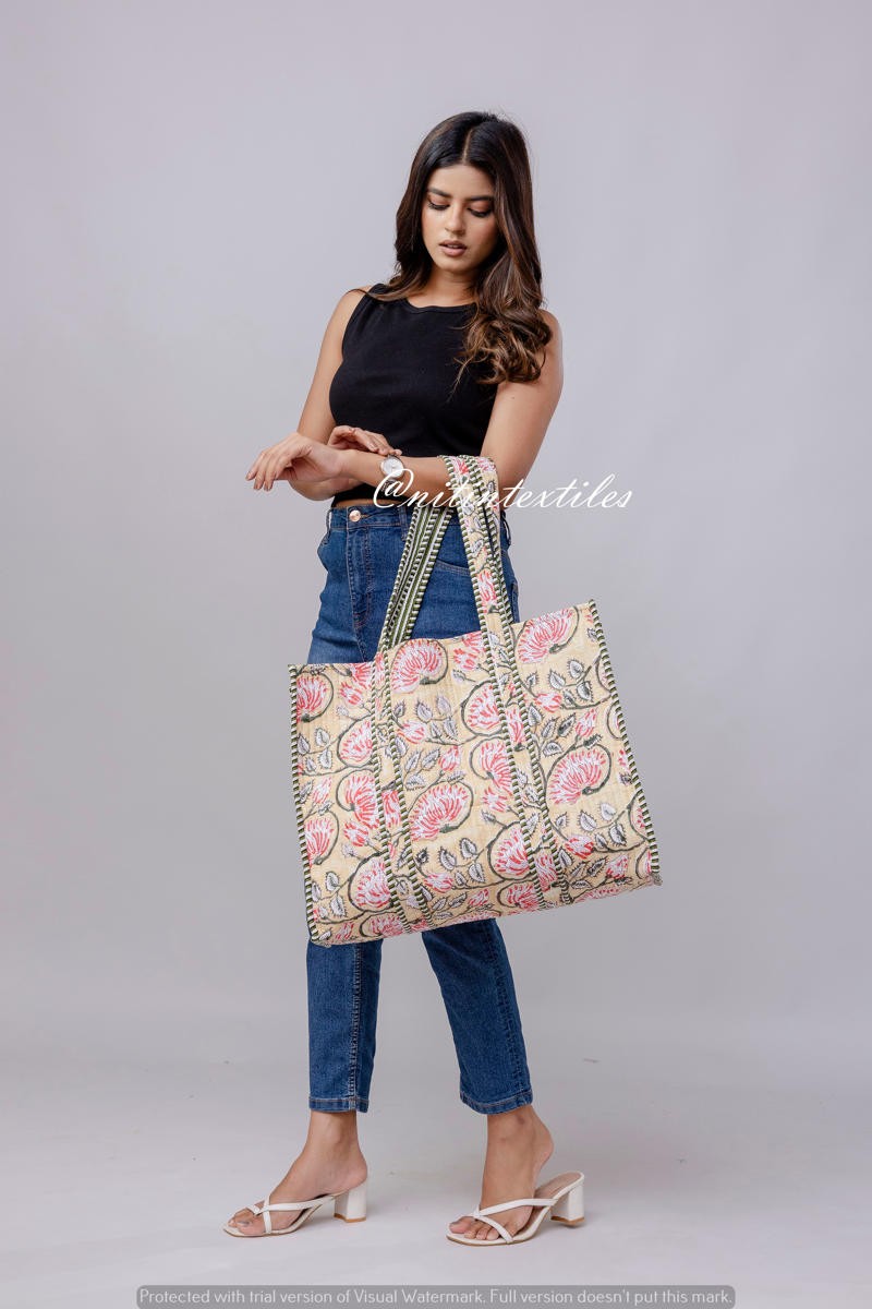 Turn heads wherever you go with our Luxury Block Printed Oversized Tote Bag – a bold fashion statement that combines style with practicality.