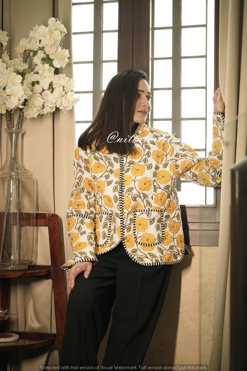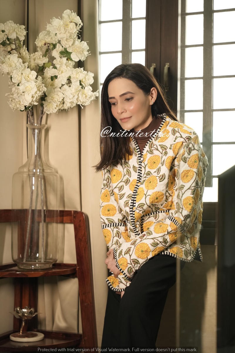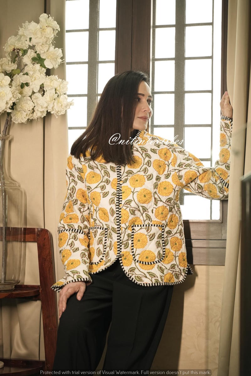 Home Jackets Yellow Sun floral Elegant Handmade Cotton Reversible Jacket